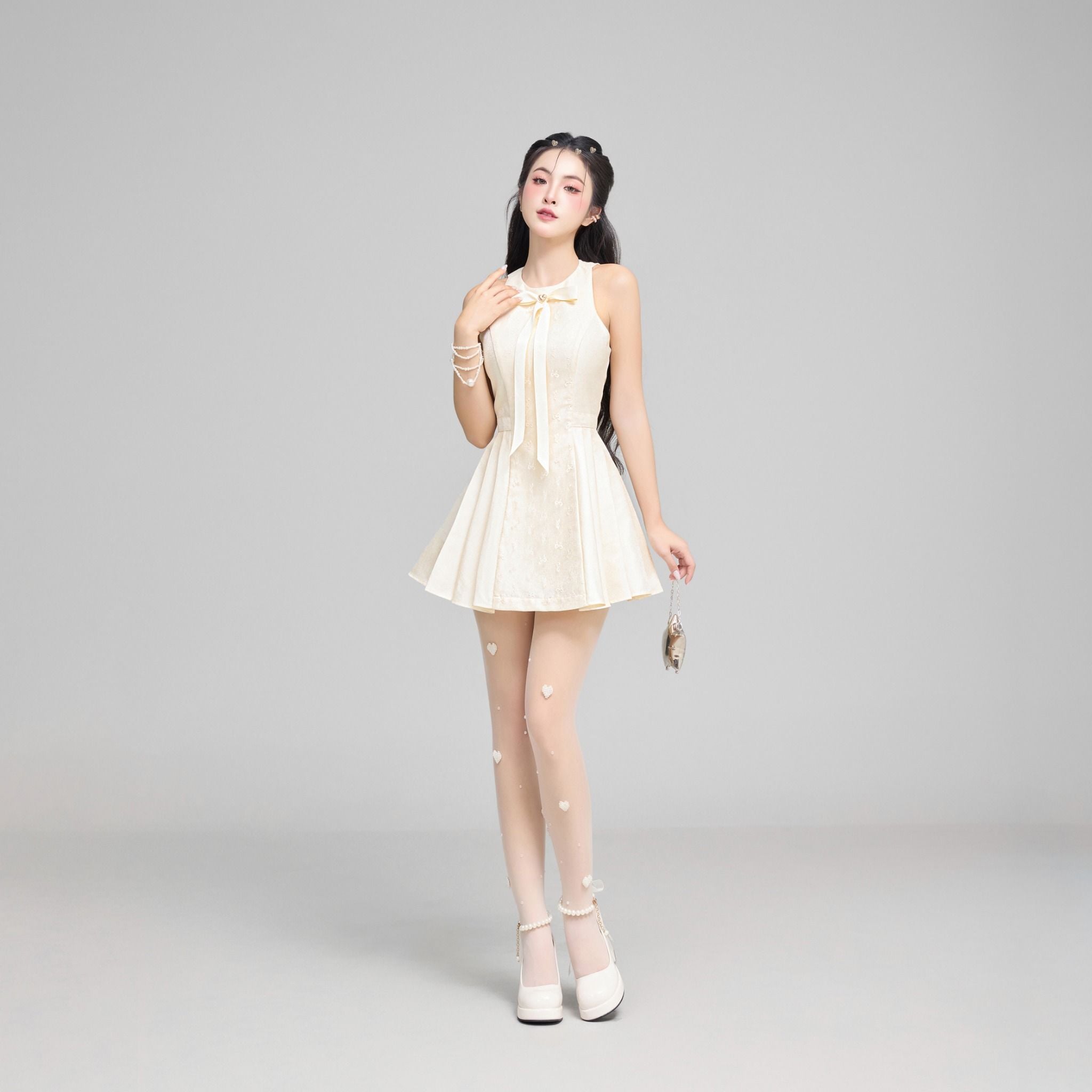Chất liệu: Tafta nhũ phối ren lưới nhũ