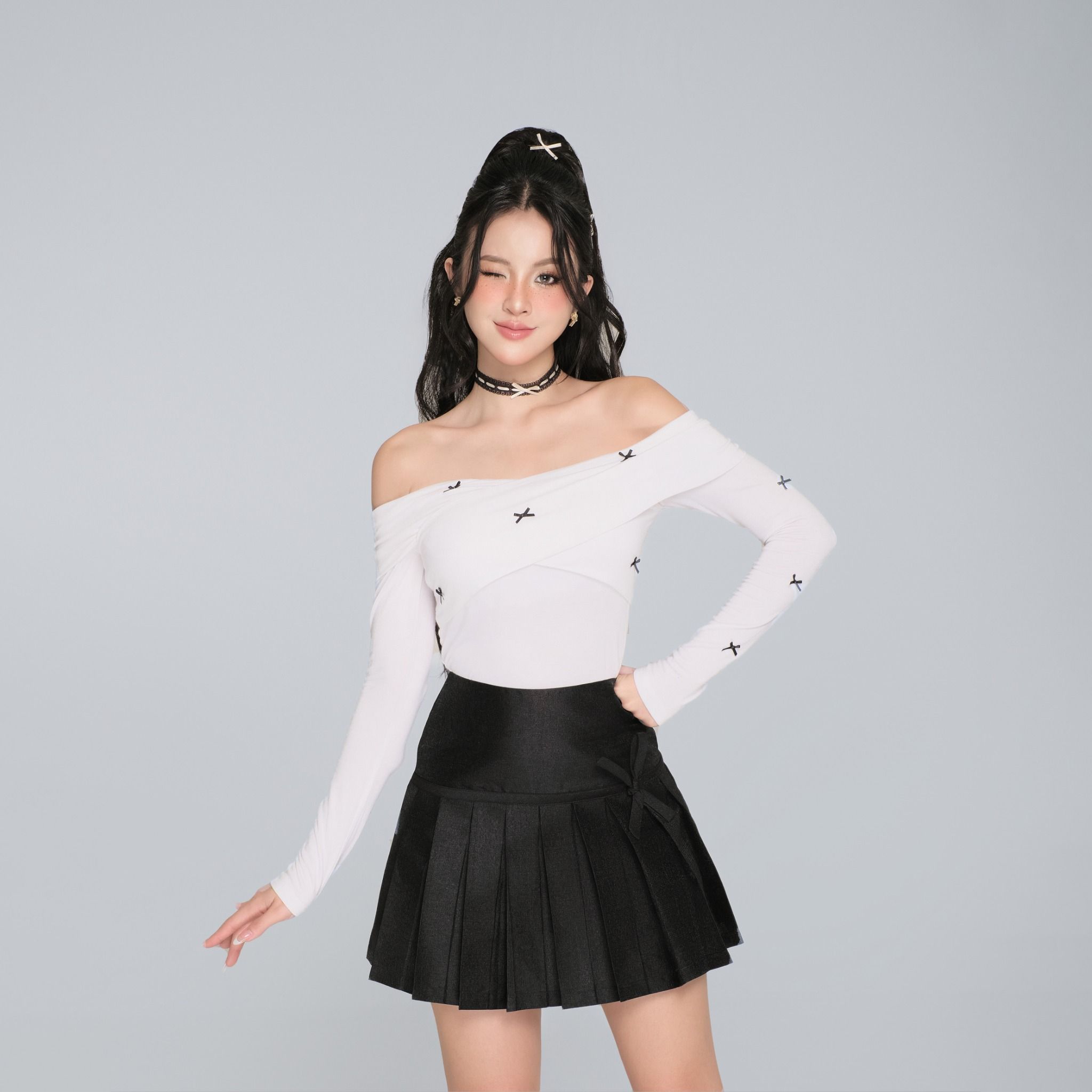 | VÁY ĐEN NGẮN XẾP LY THẮT NƠ |