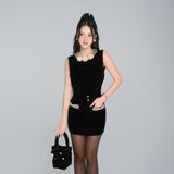 | VÁY ĐEN NGẮN NHUNG NƠ KEM |