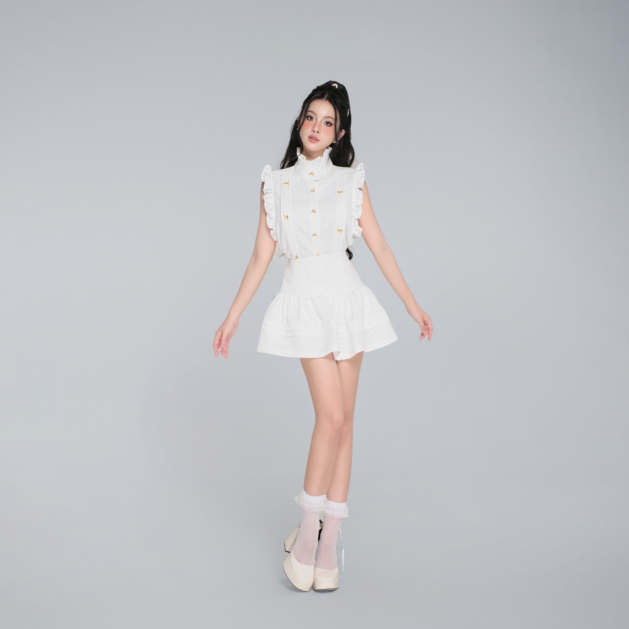 | VÁY TRẮNG NGẮN XÒE XẾP LY NGANG |