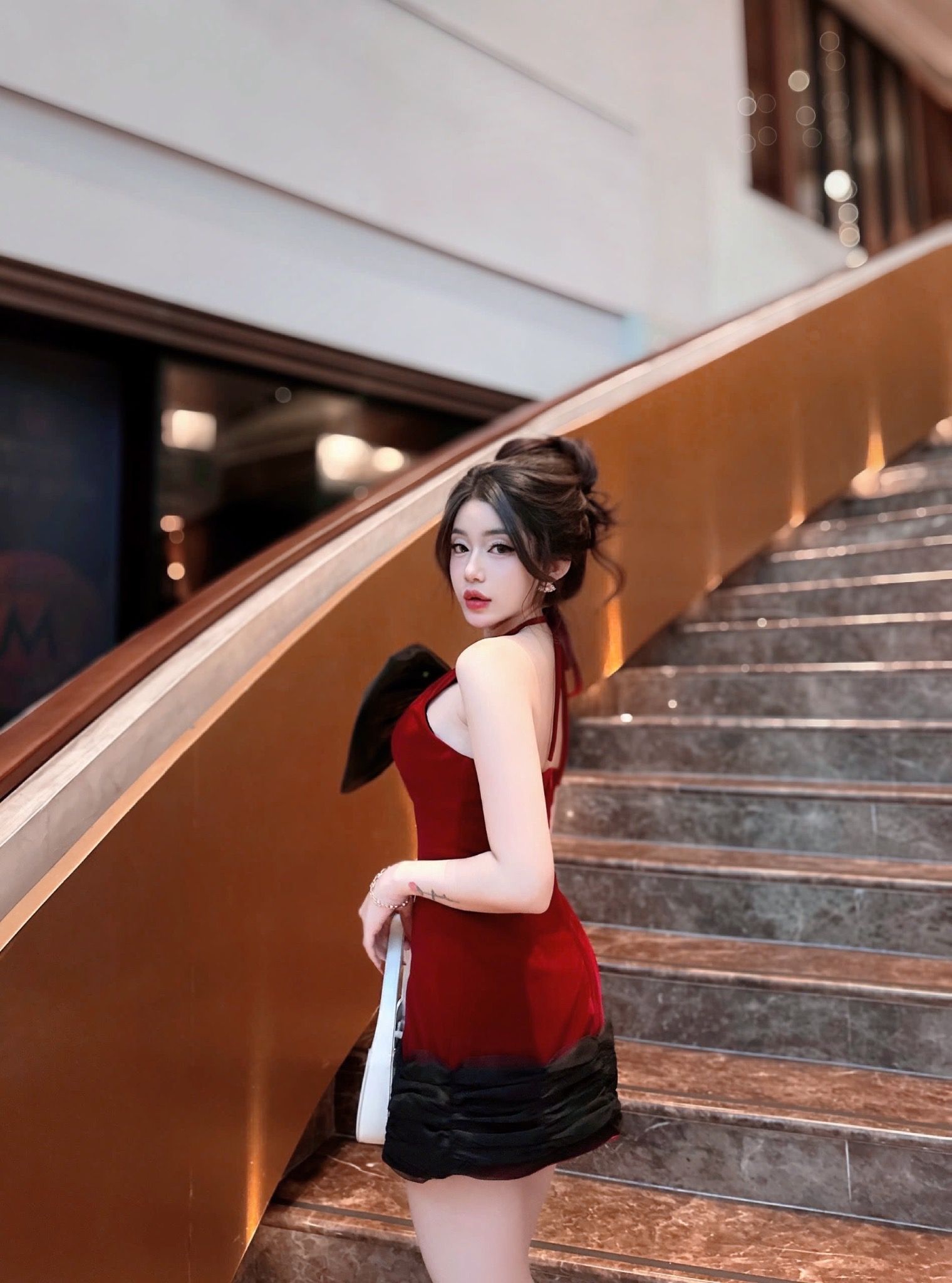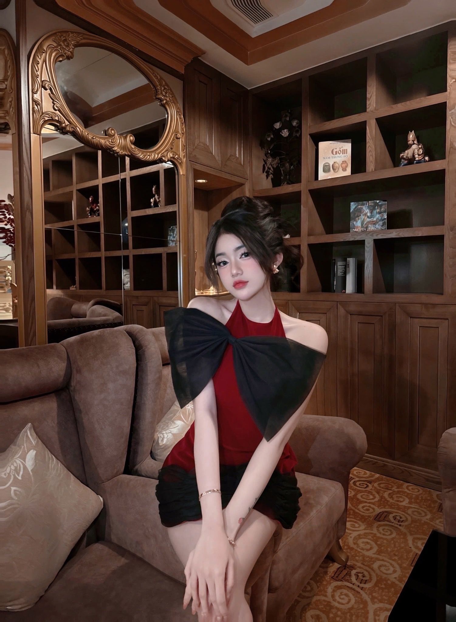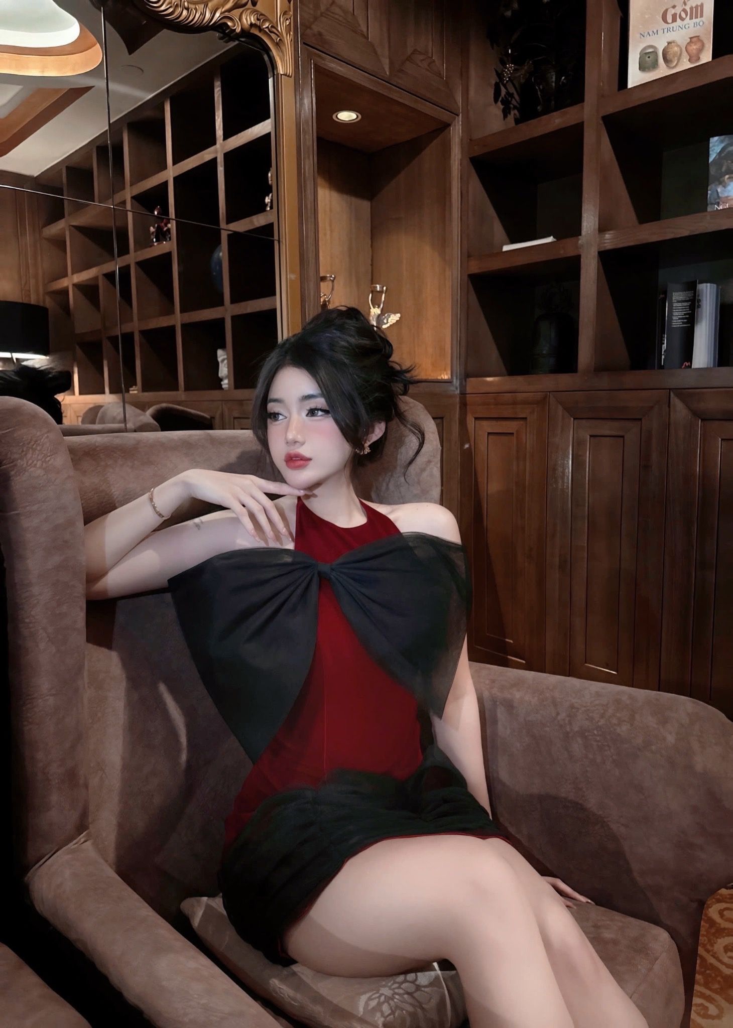 Đầm đỏ nhung kèm nơ Vanilla DISTRICTONE D5832
